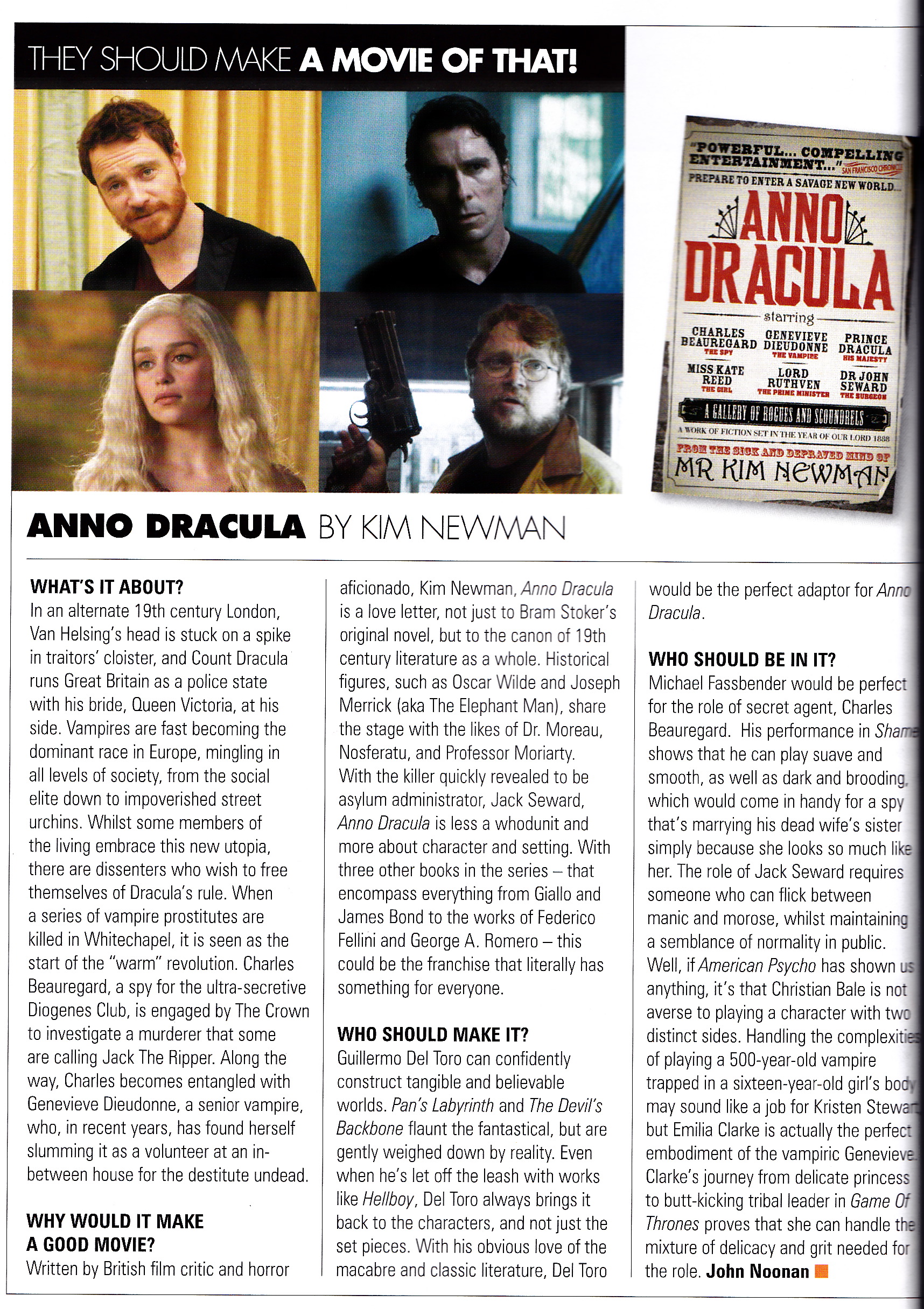 This was an article I wrote explaining why Kim Newman’s Anno Dracula would make a cracking film. it was first published in FilmInk Vol 9.18 May 2013.